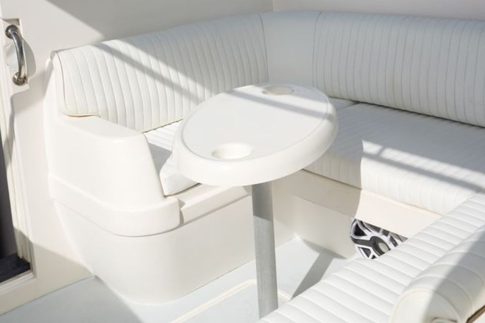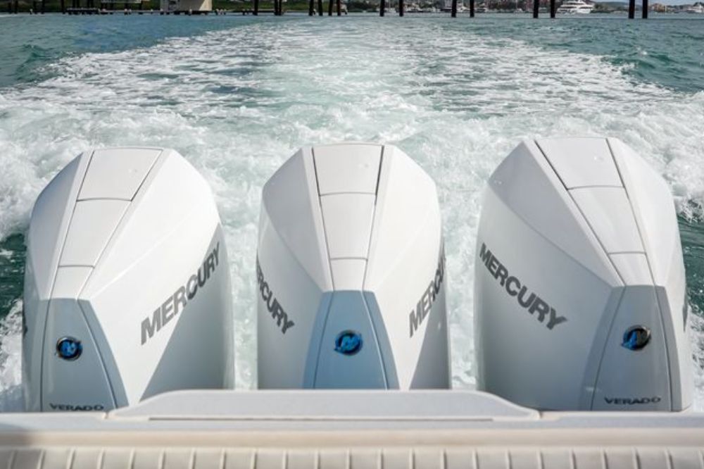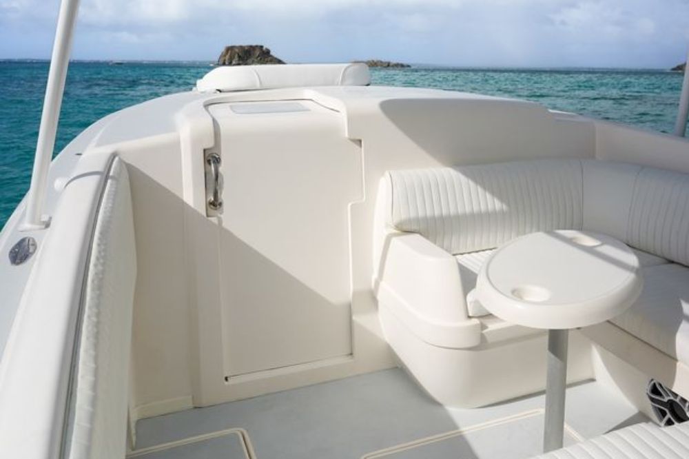 A modern and powerful speedboat designed for both excitement and relaxation, it offers a spacious bow sun lounge perfect for unwinding while island-hopping. The centrally located covered cockpit features comfortable seating and a table, ideal for socializing or enjoying the surrounding views. A large hardtop provides shade, while the exterior bar with a built-in cooler and cup holders keeps refreshments easily accessible. Thoughtful features like an aft bench, side access door with swim ladder, and a freshwater deck shower ensure a smooth, comfortable, and effortless day on the water.