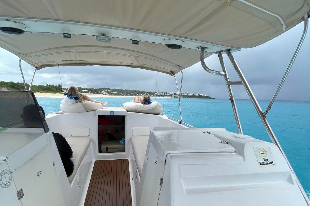 Bask in the sunshine and blue waters of St. Martin and its neighboring islands aboard the comfortable Kiwi. This power cat will take you to the most remote beaches and extraordinary snorkeling destinations. With a devoted captain and crew, you are free to Unwind, grab a snack or a drink and enjoy the day to the fullest.