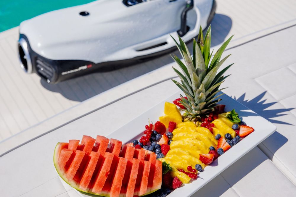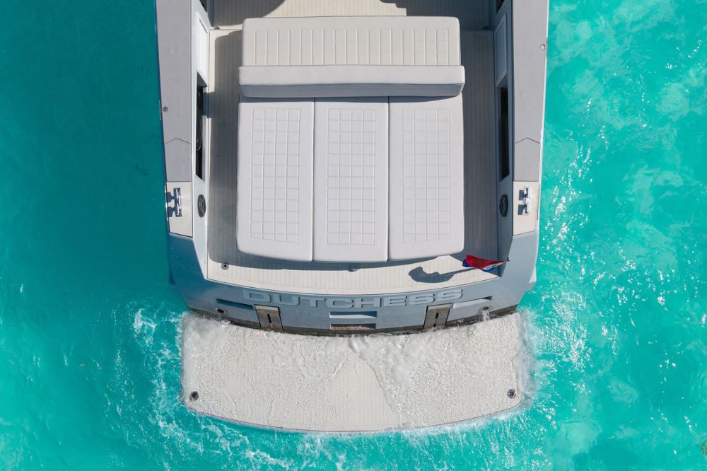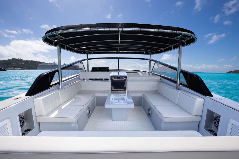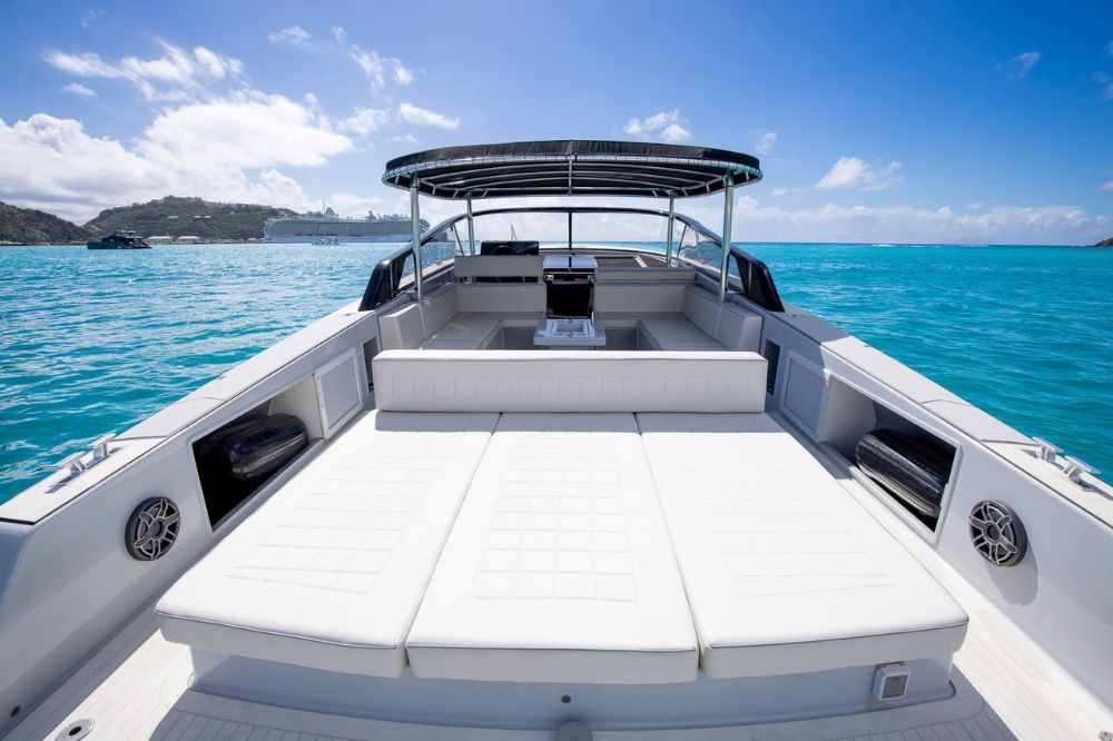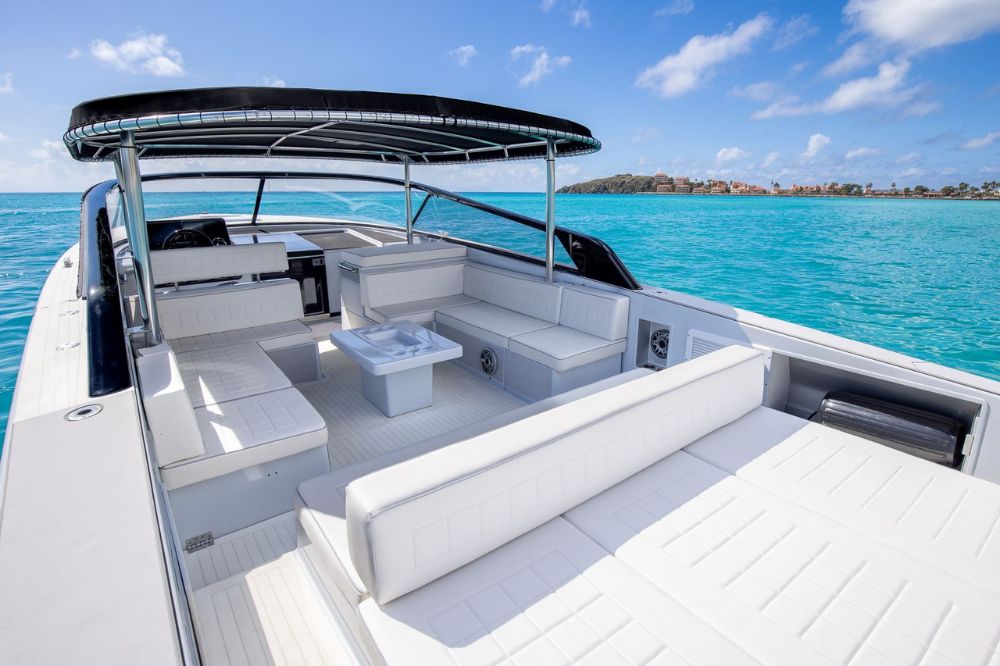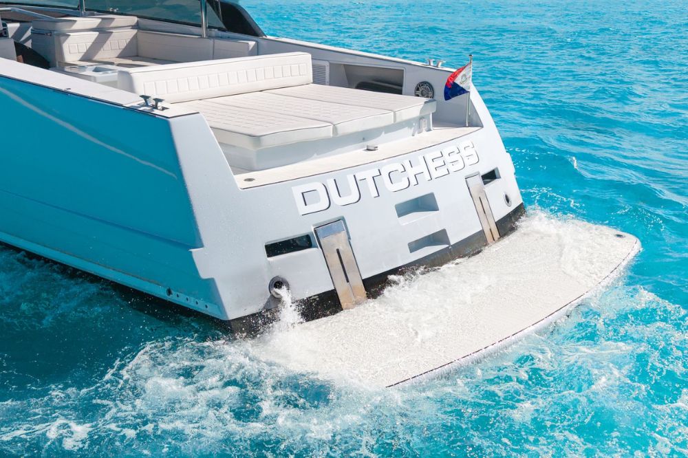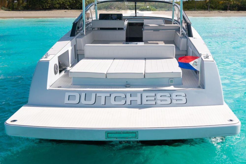 Welcome aboard the Dutchess, this VanDutch 48 has undergone a complete refit in 2025, elevating her to an exceptional standard of style and performance. Featuring a custom-built hard top that provides enhanced shade and comfort, she is perfectly designed for long, sunny Caribbean days on the water. The hydraulic swim platform makes effortless access to the sea ideal for swimming, snorkeling, or relaxing ashore in secluded bays. Built with VanDutch’s renowned deep-V hull, she handles the seas beautifully, delivering a smooth and stable ride even in open water. She’s the perfect yacht for island hopping to destinations like Anguilla and St. Barths in comfort, speed, and unmatched style.